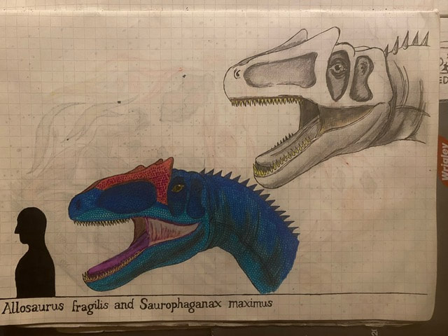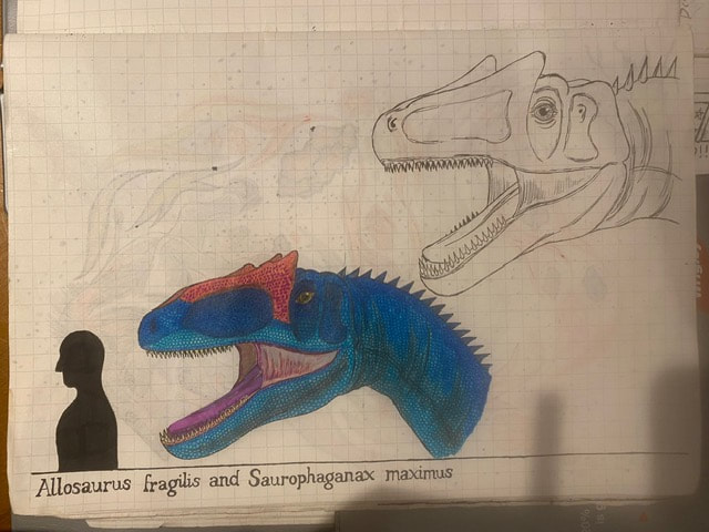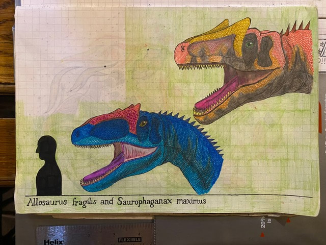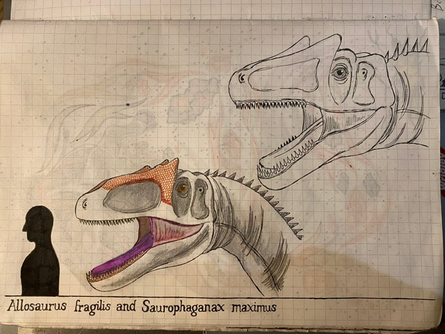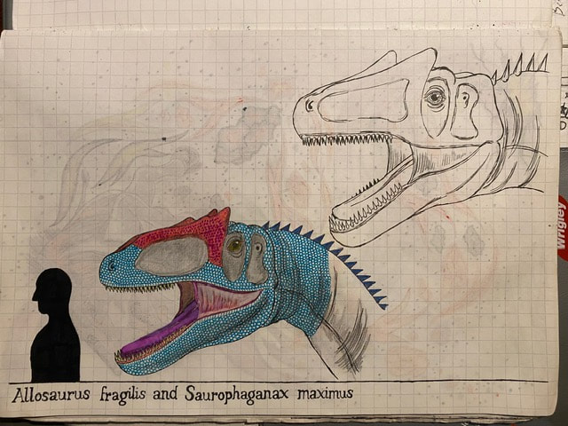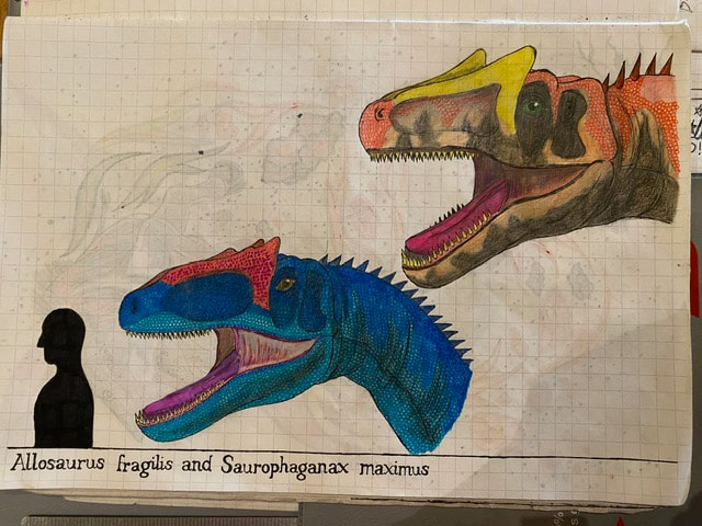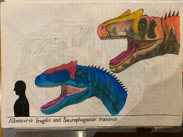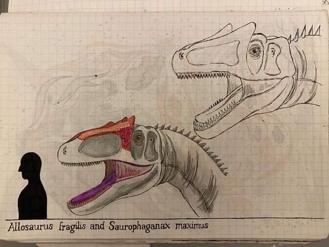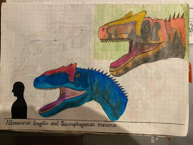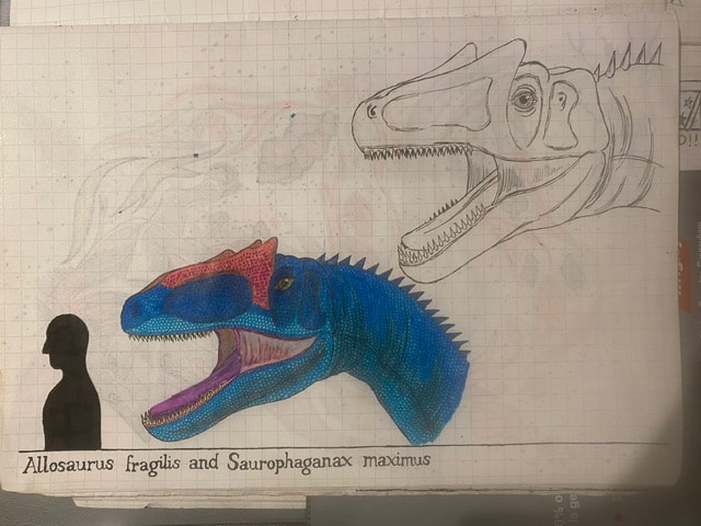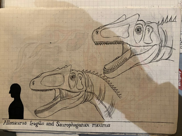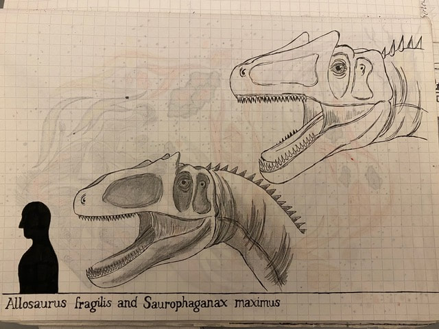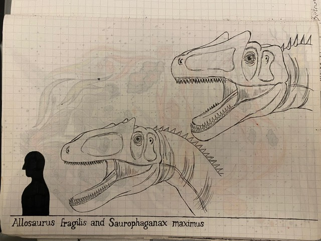 The Final Drawing of Allosaurus and Saurophaganax (Head size):