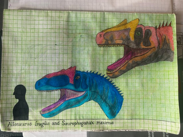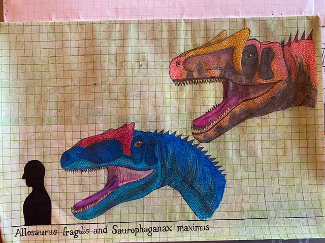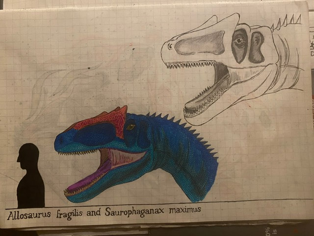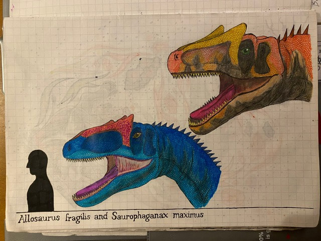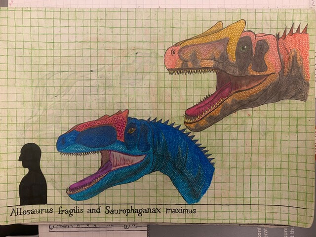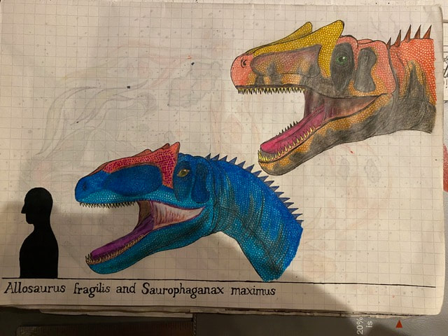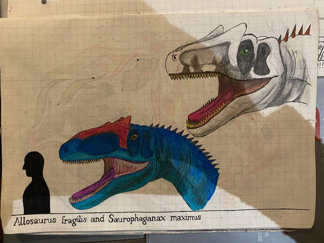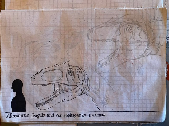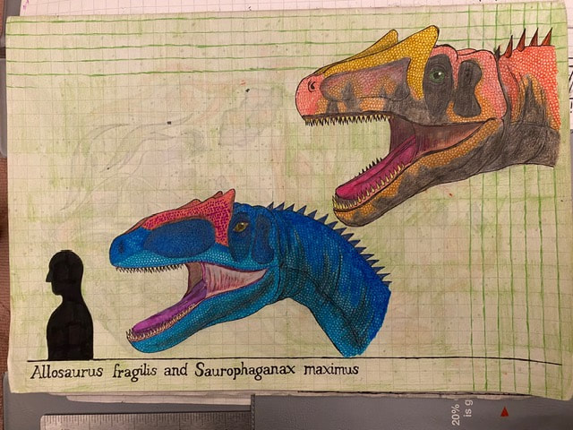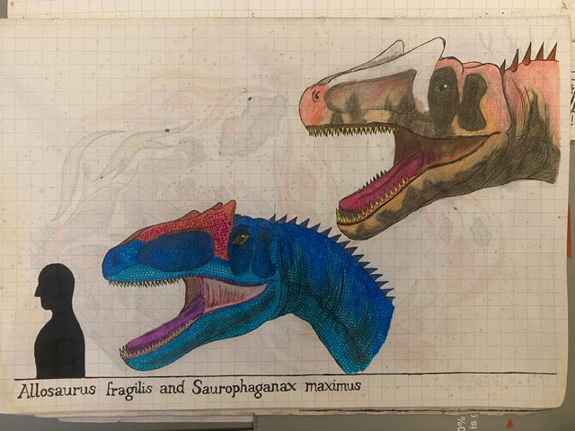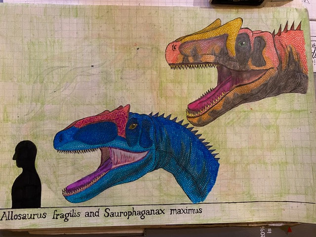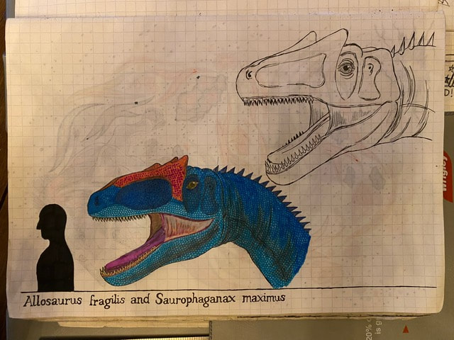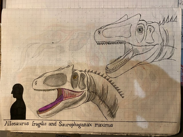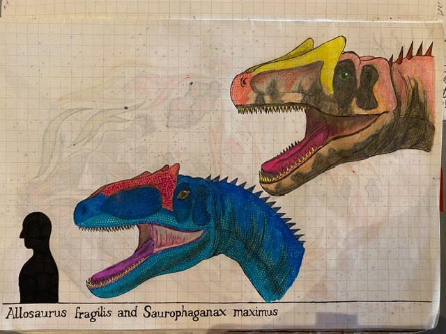 The Final Drawing of Allosaurus and Saurophaganax (Head size):